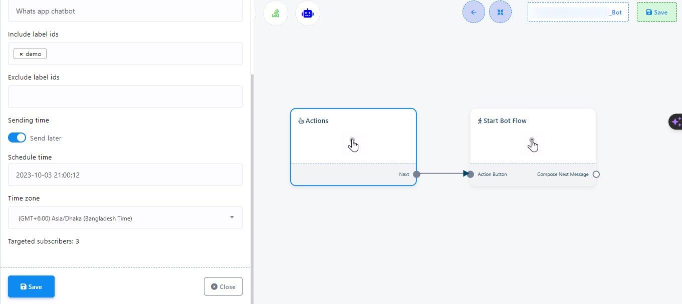 Save: Finally, save the bot flow and your broadcast will be completed.